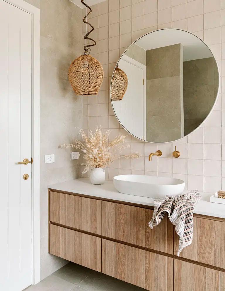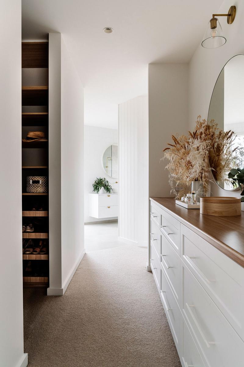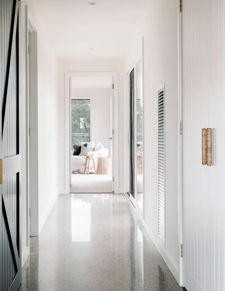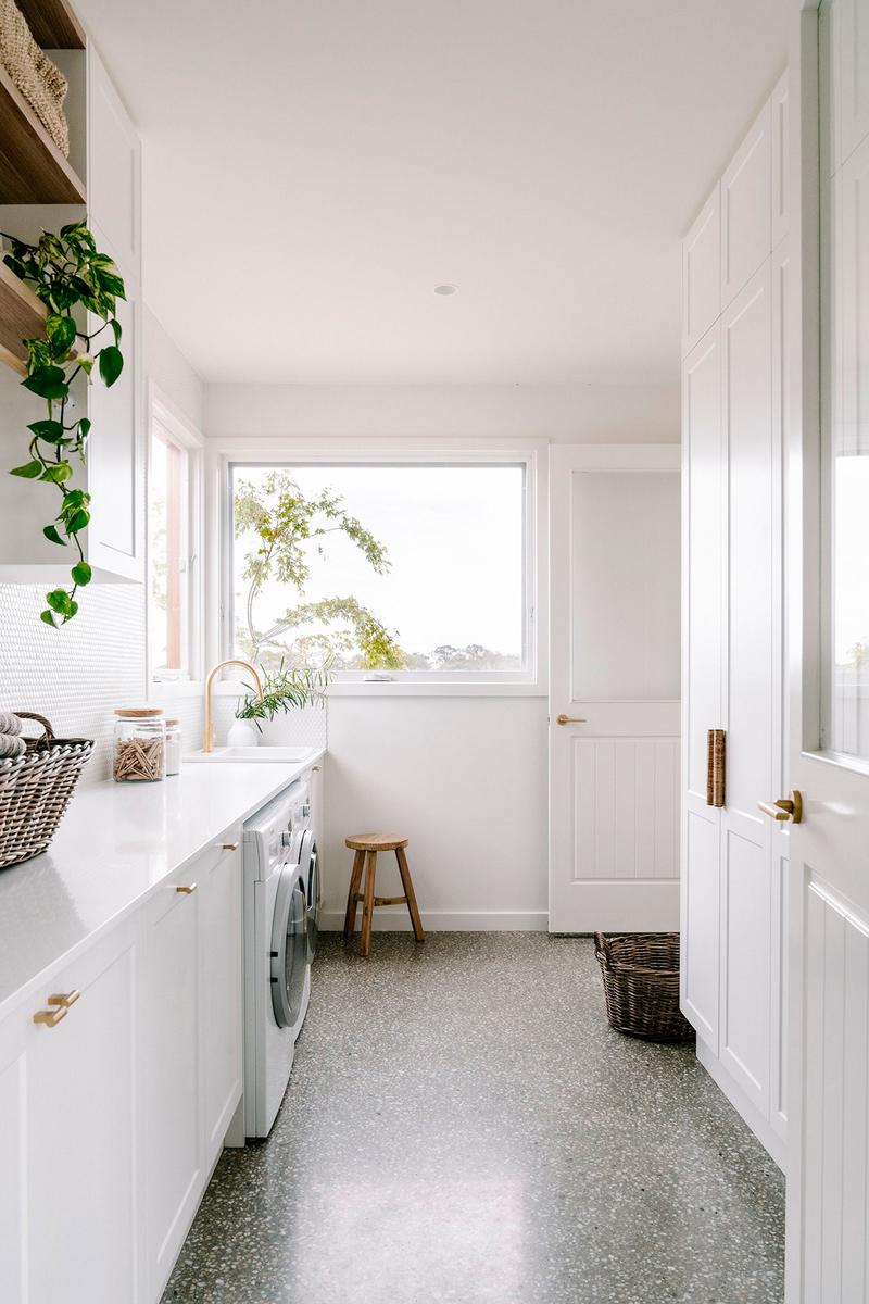 El tema de la construcción lo tenían resuelto con su propia empresa, Wade Builders, que se ocupó de dejar la casa con el mismo alma y espíritu que la antigua propiedad. Para el interiorismo contaron con Holman Designs que además, les ayudó con el diseño pasivo, reduciendo así la huella medioambiental. Cuestiones importantes como utilizar sabiamente los revestimientos o los cerramientos para sacar los máximos beneficios térmicos, fue algo que tuvieron muy en cuenta. Por ejemplo, se utilizaron suelos de cemento pulido, que son buenos conductores tanto de frío como de calor, y grandes acristalamientos para aprovechar la luz y el sol (muchos de ellos incluso, se benefician de las vistas al río). Por otro lado, también pensaron en el agua, cuyo abastecimiento proviene única y exclusivamente de los diversos tanques de lluvia distribuidos por los techos de los cobertizos.