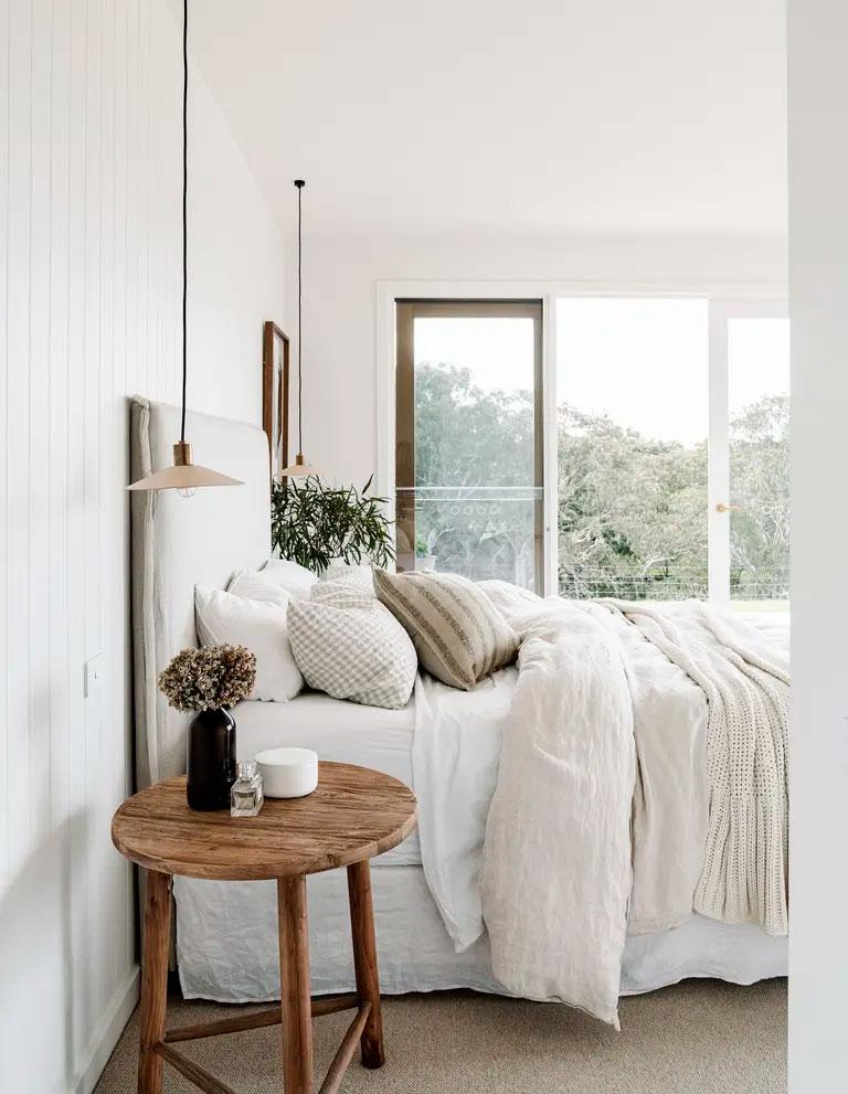Un lugar privilegiado es el dormitorio, un remanso de paz con textiles de lino, escaso mobiliario elegido acorde a esa sensación rústica y de calma que quieren transmitir y su ubicación, hace que puedas contemplar y escuchar el río desde la cama ¿no os parece idílico?
