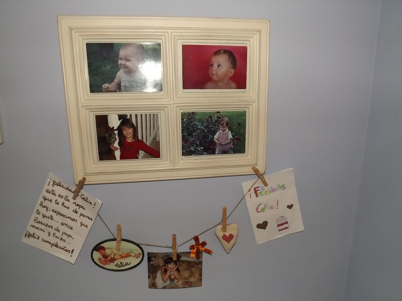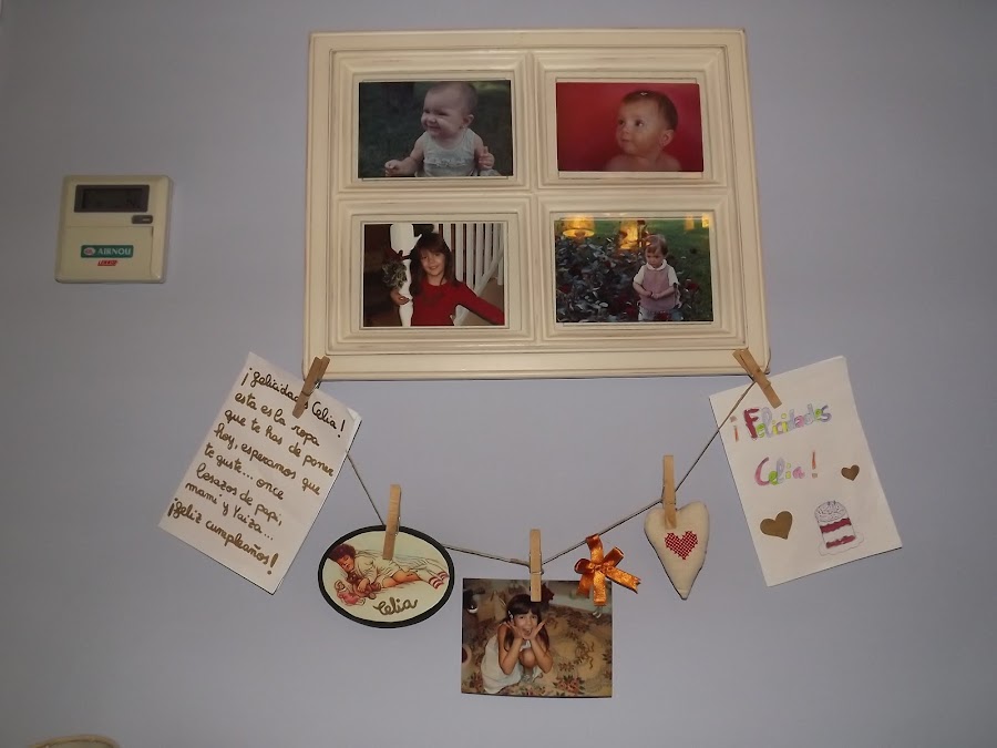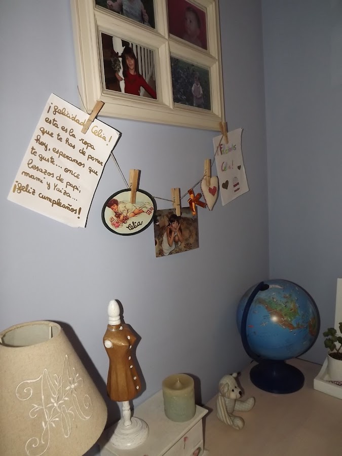 Hoy os traigo una manualidad para la habitación de vuestros hijos...es fácil de hacer solo necesitáis unas tijeras,cuerda,cola y pinzas de madera para la ropa.Una vez hecha vuestros peques podrán colgar fotos,sus dibujos y algún que otro tesoro...mi hija está encantada...