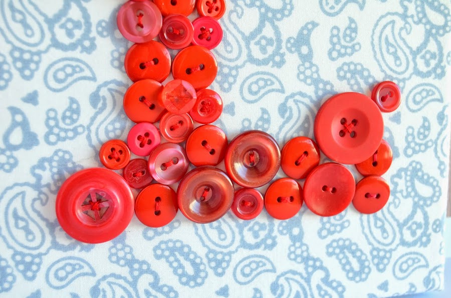 Aquí va mi primera letra. El truco está en conseguir botones de diferentes tamaños, tonalidades similares y acabados diferentes. Así conseguirás un efecto aún más bonito.