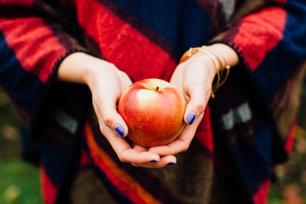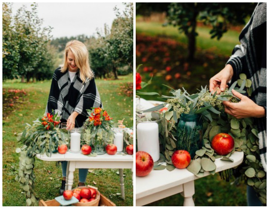 El rojo de las manzanas resalta de una forma increíble entre el verde del camino y centros de mesa, os puedo asegurar que Blancanieves no se hubiera podido resistir a probar una de ellas.