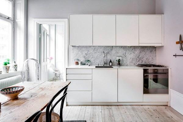 Por eso vamos a volver a buscar inspiración en interiores cálidos y acogedores que nos den ese puntito de calor que vuelve a ser tan necesario. Aunque en el home tour de esta semana, no es precisamente un material salido el que me llama la atención, si no mas bien todo lo contrario. El mármol y sus usos, es un tema en el que podríamos profundizar durante mucho tiempo, de hecho lo haremos en un futuro, y es por eso que el uso que le han sado en esta vivienda es principalmente practico, como revestimiento en zonas húmedas como el baño y la cocina, es un material del que se pueden sacar grandes ventajas, resistencia, durabilidad, aspecto estético…