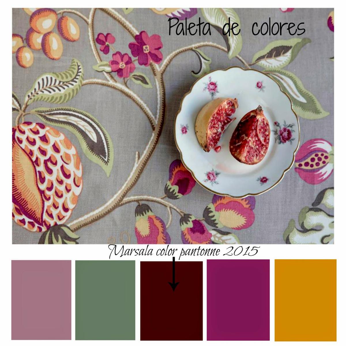 Pero si hay algo por lo que apuesta especialmente el informe anual de Pantone, es por la utilización del Marsala como base para la creación de patrones florales para los tejidos. Y en Güell-LaMadrid - que como sabéis es una de las marcas con las que trabajamos en la tienda - han tomado buena nota como demuestra su diseño "Sangría" un estampado que, como el color que lo inspira, tiene una fuerza, un color y un sabor muy mediterráneo.