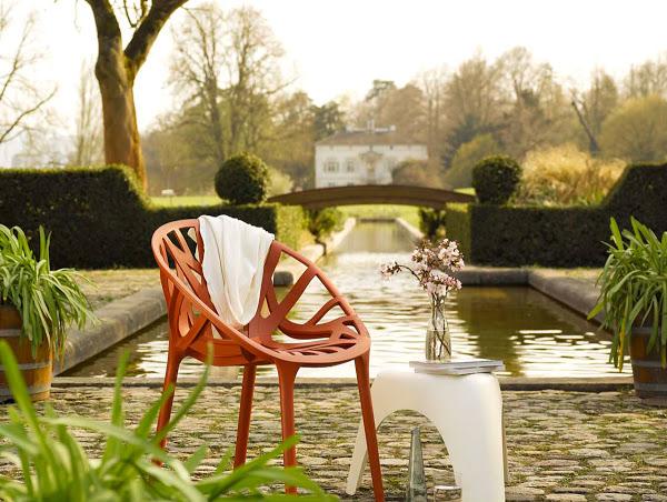 Objetivo conseguido ¿No os parece? Una estructura muy elegante de poliamida teñida apilable y apta -como ya he dicho - tanto para interiores como exteriores. Puedes hacerte con un ejemplar a un "módico precio" en Vitra y escoger entre sus seis colores que no son habituales en las sillas de plástico, haciendo hincapié en la idea subyacente de reproducir las estructuras que se encuentran en la naturaleza.