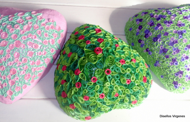 Estos corazones son como cuadros, listos para colgar de la pared. Un cuadro distinto, un detalle distinto. Romantico y fresco.