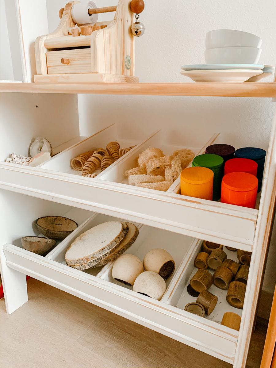 Hasta ahora Valentina tenía en la zona de juego simbólico de su playroom todo tipo de comida de madera. Os había hablado en varias ocasiones por aquí y no es que ahora os quiera decir que es MAL y que hay que evitarlo, si no que llegó un momento en el que vimos que se había convertido en una limitación de su juego. Me explico: