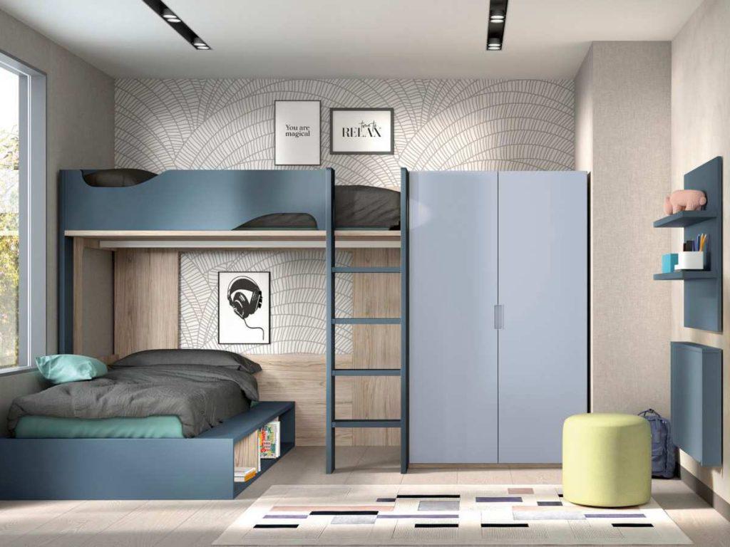 Si compartes la habitación con un hermano o simplemente deseas aprovechar al máximo el espacio vertical, las literas o las camas tipo loft son excelentes opciones. Estas camas elevadas te permiten utilizar la parte inferior para crear un área de estudio, un espacio de estar o incluso un armario. Asegúrate de elegir una litera o una cama tipo loft con estanterías o escritorios incorporados para obtener aún más funcionalidad.Muebles modulares