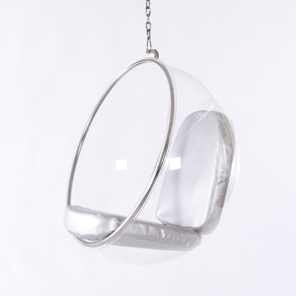 La BUBBLE CHAIR, al igual que la BALL CHAIR, tiene un estilo retro y pop, aunque ésta posee un aire más "futurista" gracias al material acrílico del que está fabricado.