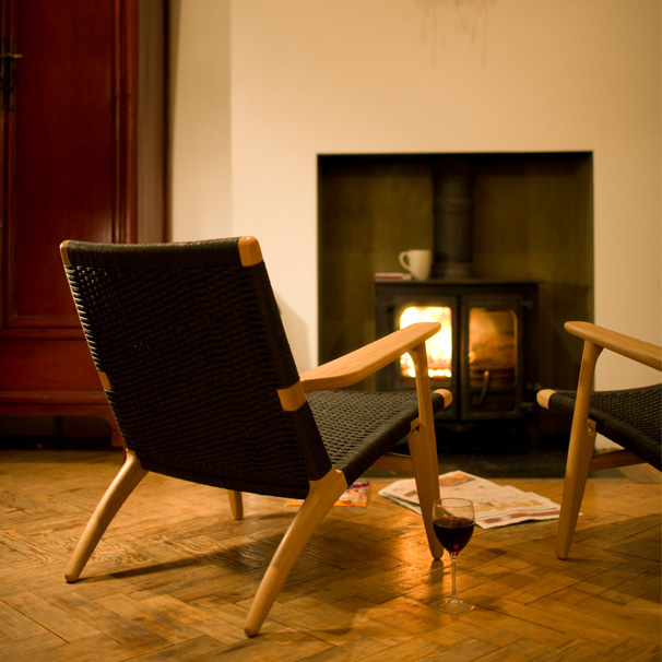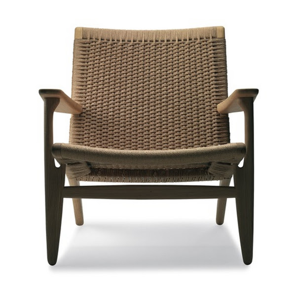 La butaca CH25 fue diseñada por el danés Hans J. Wegner en 1950 y actualmente es distribuida por la firma Carl Hansen. Su fabricación es artesanal, ya que el respaldo y asiento están formados por 400 metros de cuerda de papel tejidos a mano que un artesano tarda 10 horas en acabar. La estructura realizada en madera de roble tiene varios acabados disponibles, barnizado, teñido, color negro,...al igual que el asiento, que podremos encontrar en acabado natural o negro.