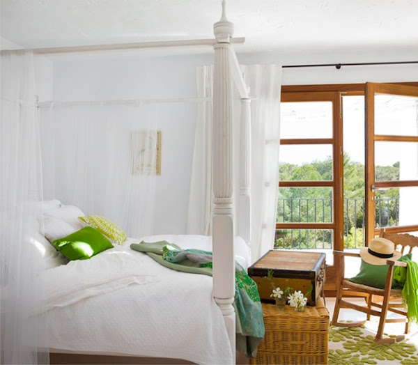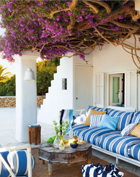 Si el otro día nos adentrabamos en una casa de la costa alicantina construida por pescadores, en el home tour de este viernes nos trasladamos hasta la Isla Balear de Ibiza. El protagonismo y encanto reside principalmente en su exterior, decorado en blanco, azul e intenso color morado de las buganvillas......una planta que adoro.
