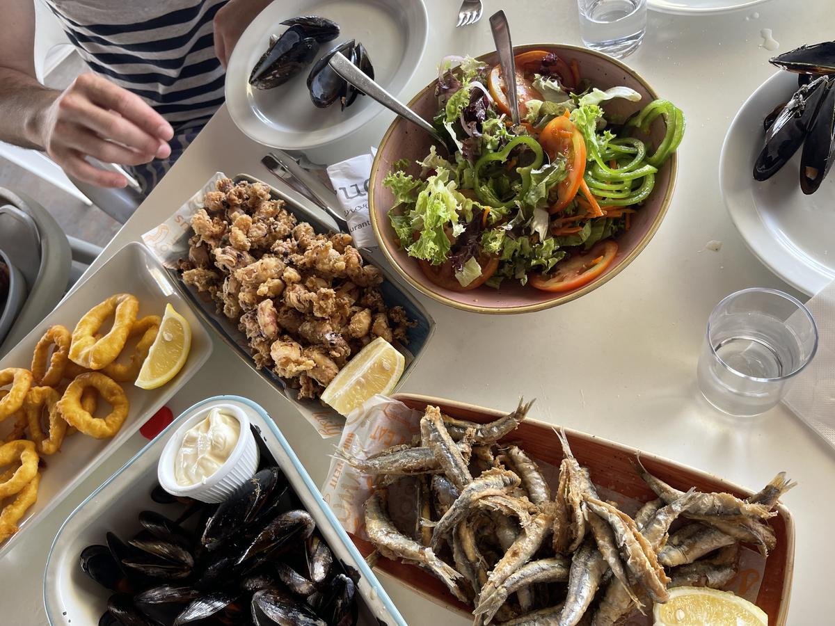 Por la noche fuimos a cenar a Meloussa Beach Club, desde nuestros apartamentos está a 3 minutos exactos. Está justo encima del Arenal de Son Saura y podréis cenar mientras veis la puesta de sol.