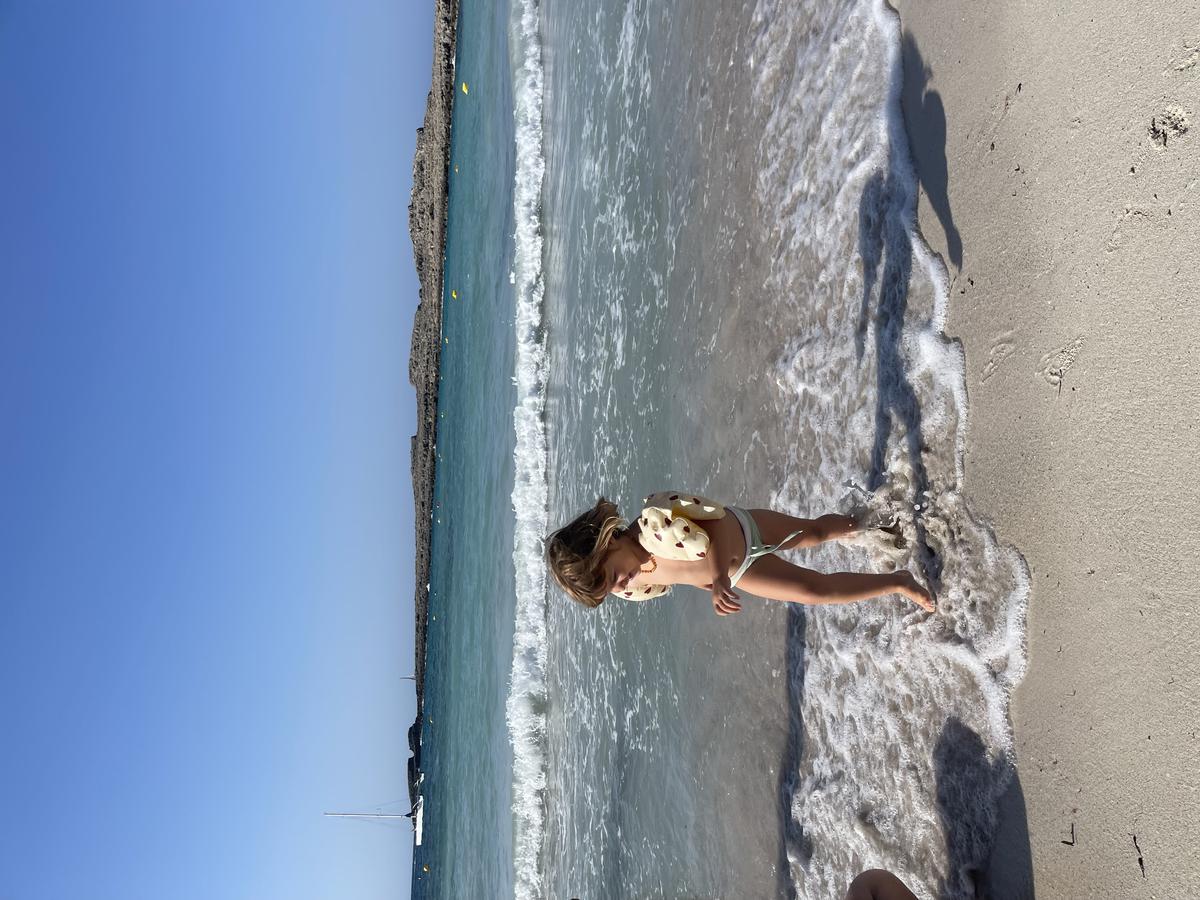 Como era el día que nos íbamos y teníamos que dejar el apartamento a las 12h, decidimos ir a la Cala que tenía acceso directo desde los apartamentos, Arenal de Son Saura. Estubimos disfrutando de una cala muy tranquila y llana, ya que puedes andar y andar por el mar y apenas te cubre más allá de las rodillas. Es una cala perfecta para los peques.