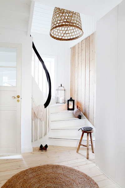 Navegando encontré esta casa sencillísima, no hace apenas uso del color y se mueble perfectamente entre looks total white y algunos negros todo mezclado con velas, fibras naturales y madera... tres elementos importantísimos si quieres conseguir un efecto cálido y acogedor.