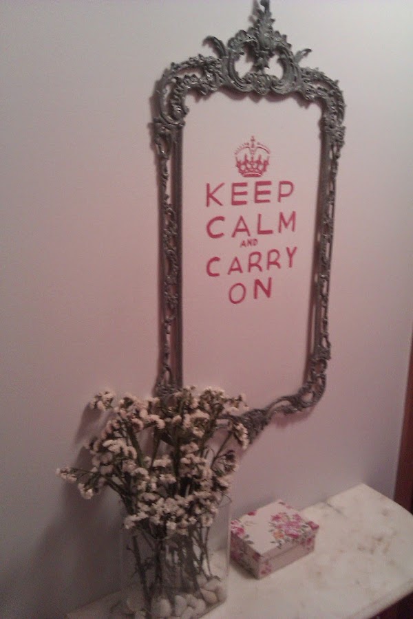 El "espejo sin espejo", en lineas afrancesadas era en tonos dorados, y lo he teñido en tonos grises, para encajar en el vestíbulo con el resto de tonalidades