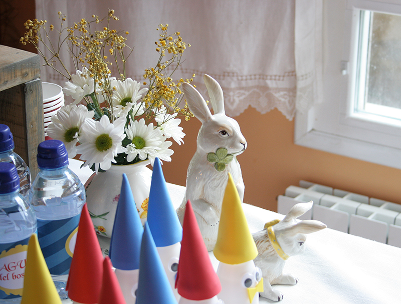 Y por supuesto, flores y animalitos del bosque... En este caso invitamos a unos simpáticos conejos que no dudaron en quedarse... ¿Nos falta alguien?