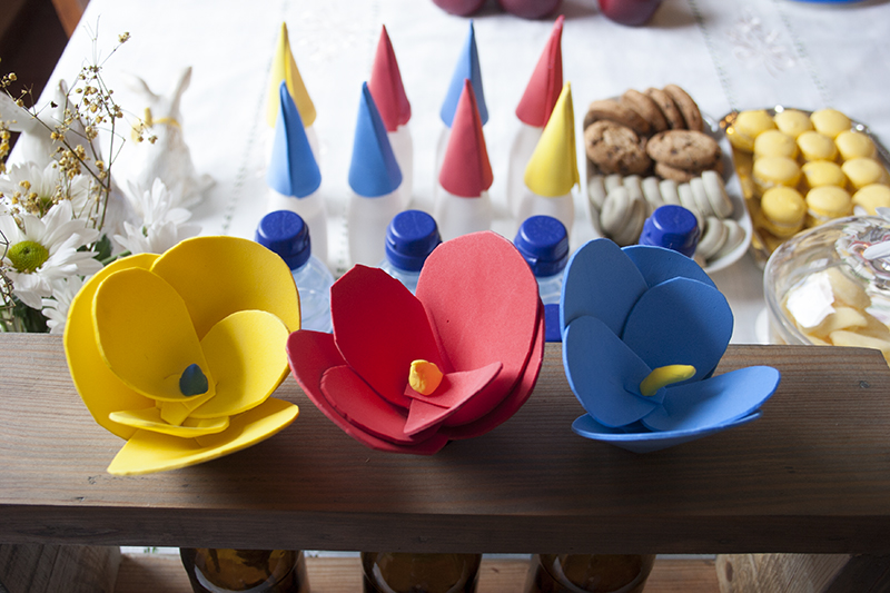 Con esa misma goma eva, hicimos unas flores. Una manualidad que el explorador hizo en el cole, y que nos pareció super acertada para hacer con todos los peques del cumple ¿qué os parece a vosotros? Otro día os enseñaremos cómo hacerlas ;)