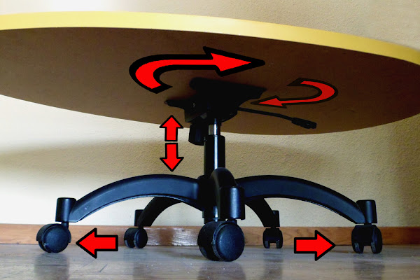 Como veis es una mesa con ruedas que se traslada fácilmente por la habitación (ideal para barrer con comodidad),
