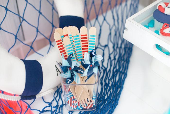 Colores: Obviamente no pueden faltar las rayas azul marinas y blancas con toques rojos en una fiesta marinera. Pero la combinación con el turquesa lo hace muy playero y más informal