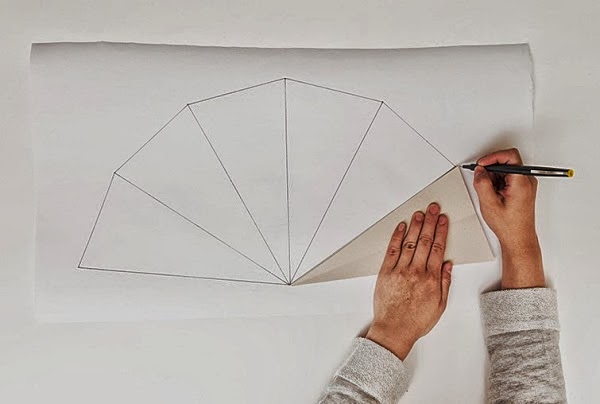 Desdoblamos el papel y en un hoja mas grande vamos dibujando el contorno de nuestro primer triángulo, (desdoblado) 6 veces.