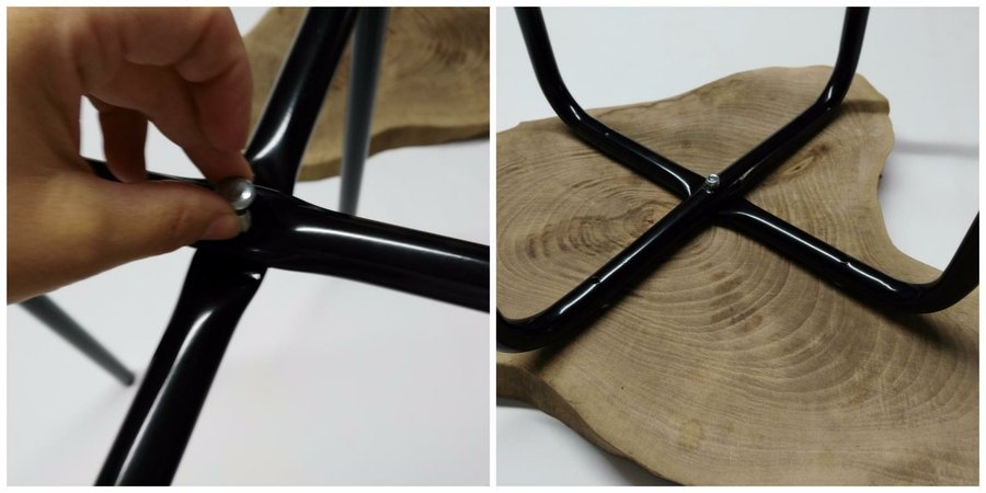 Una vez estuvo lijada comenzamos a colocar las patas del taburete de Ikea siguiendo sus instrucciones y sujetamos las patas en el centro.