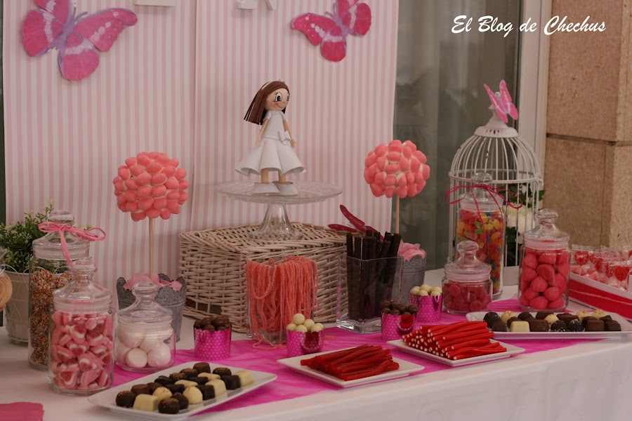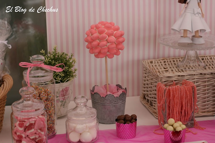 En la mesa, presidiendo, su fofucha, y montones de chuches junto con barquillos, piruletas, y unas bandejas de bombones.