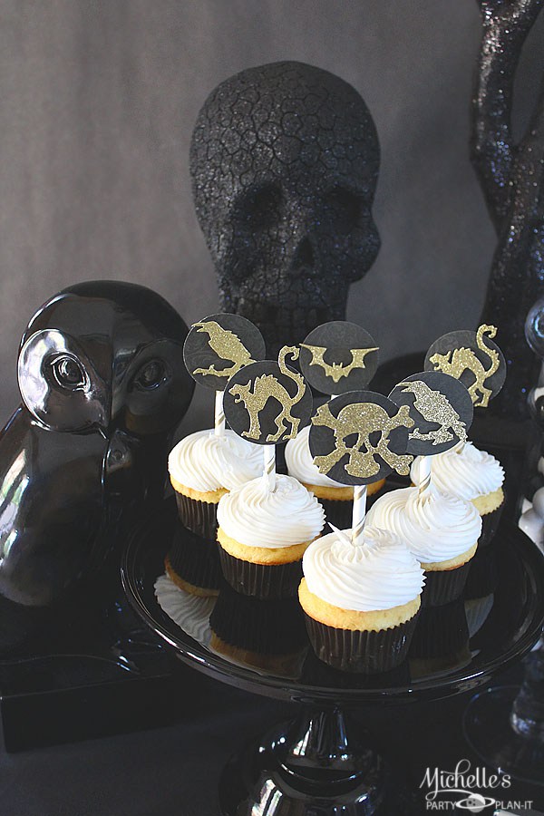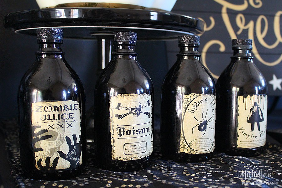 Además, puedes imprimir unas etiquetas para personalizar las botellas y que parezcan pócimas mágicas o hacer unos toppers para los dulces de la mesa.