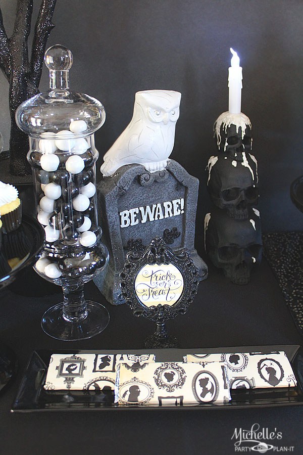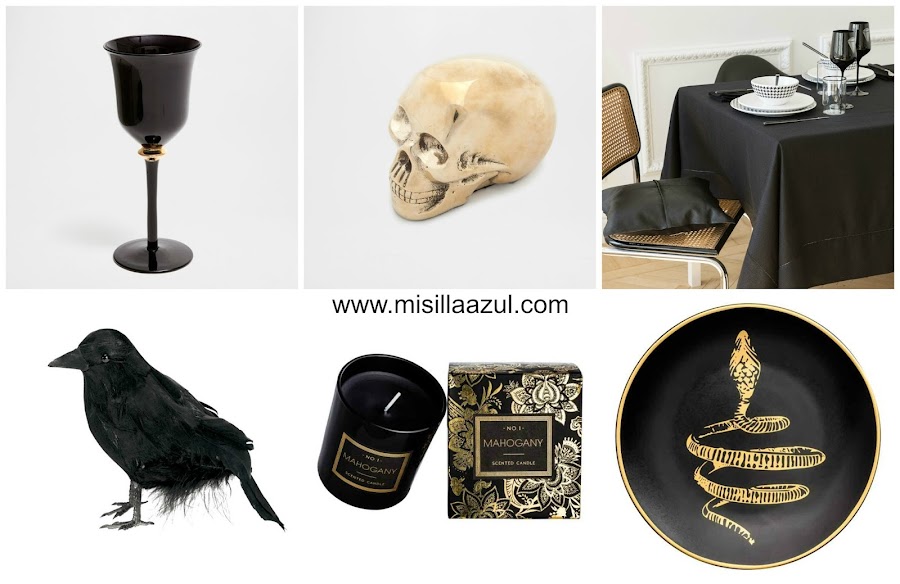 Y para poner el toque final un poco de deco especial para la ocasión: una vajilla terrorífica, velas, calaveras, búhos, cuervos, lápidas, arañas....¡¡¡.todo lo que se te ocurra!!! Aquí te dejo una pequeña selección que puede ayudarte.