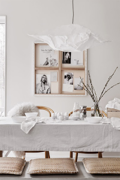 En realidad, son imágenes de distintos espacios, pero podrían englobarse para la decoración de un mismo hogar. La combinación de colores blancos y tonos madera natural, sabéis que es una de las combinaciones que más me gustan.