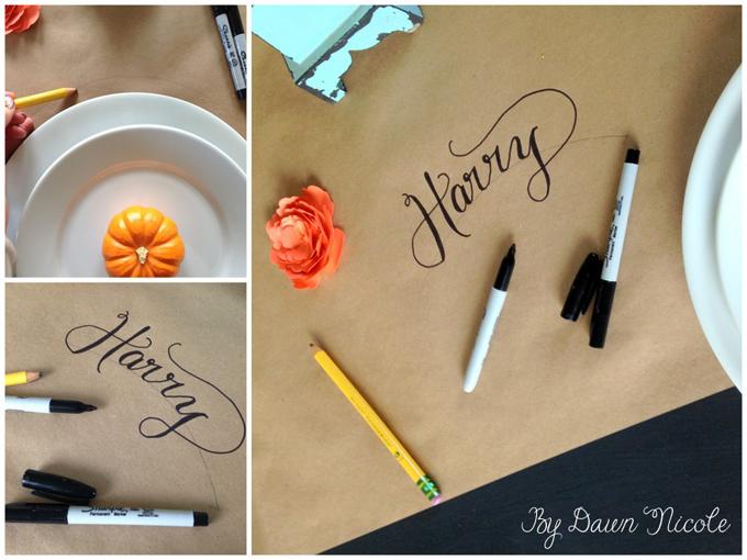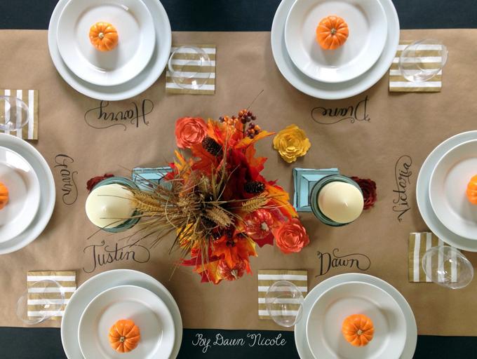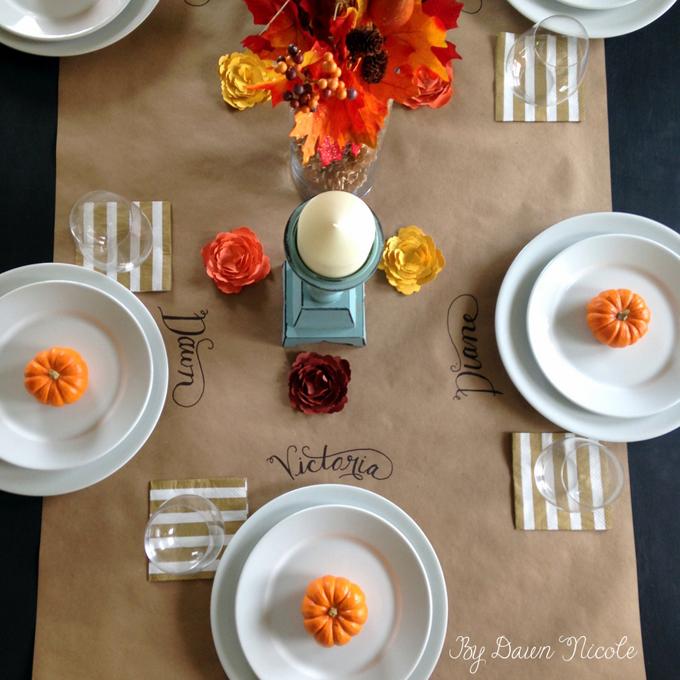 Mirad que manera más sencilla y original de decorar la mesita para estas fiestas. Solo necesitamos papel craft, que utilizaremos a modo de mantel y dibujaremos en él el nombre de los comensales. Para que quede una letra bonita lo ideal es que las imprimamos en unas hojas utilizando una tipografía bonita y utilizar papel de calco para pasarlas al mantel. Luego las repasaremos con un rotulador y listo. Para terminar de decorar la mesita un centro con una piñitas y unas flores o algún adorno navideño que nos guste. Qué os parece la idea. A mi me ha encantado, Fácil y resultona.