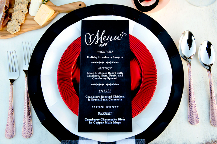Me gusta mucho la idea de las mini tablas individuales de jamón y quesos y el menú en cartulina negra ... ¡me lo apunto!.
