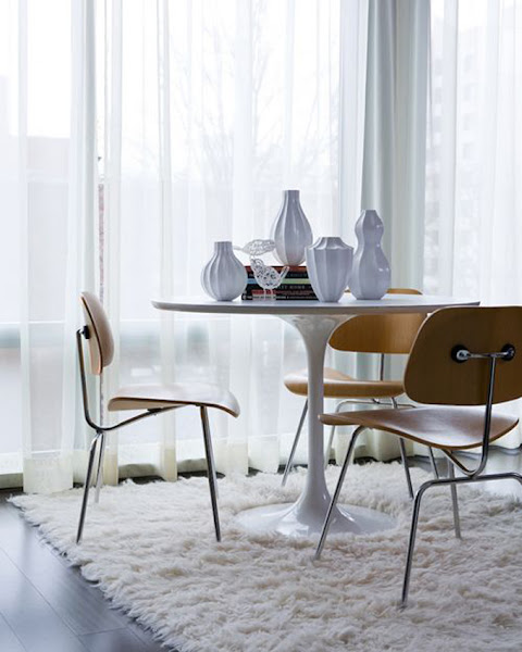 El arquitecto finlandés Eero Saarinen concibió la mesa Tulip en 1956 y es uno de los iconos más importantes del diseño moderno. Me gusta mucho combinada con sillas que contrasten con su diseño, tan limpio y moderno, con sillas de madera o tapizadas. Se adapta bien a cualquier ambiente ayudando a resaltarlo.