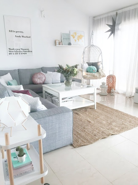 Si me seguís en Instagram habéis visto como en los últimos meses la madera, los tonos beiges y las fibras naturales están ganando mucho protagonismo en toda la casa, así que en el salón no podía ser menos. Creo que la idea será poner una mesa de roble, con canto redondeado (por el peque) y pequeña para poder quitarla con cierta facilidad.