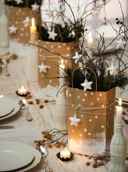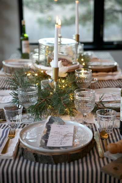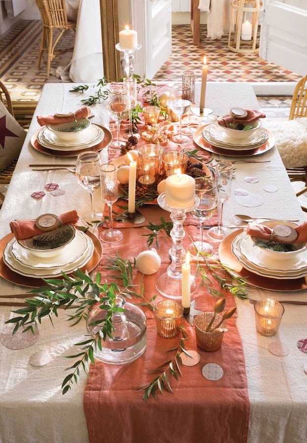 Esta es mi propuesta. Fuera manteles (si no lo puedes evitar, que sea un mantel muy especial, sencillo y en tonos neutros, como este), velas, muchas velas por la mesa, una vajilla sencilla y unas ramas en el medio. Sencillo, ¿no?. Fuente de las imágenes: 1 / 2: Another feather instagram / 3 / 4 / 5 / 6 / 7 Online shop - www.luanord.com