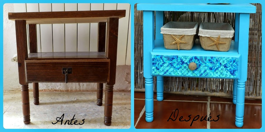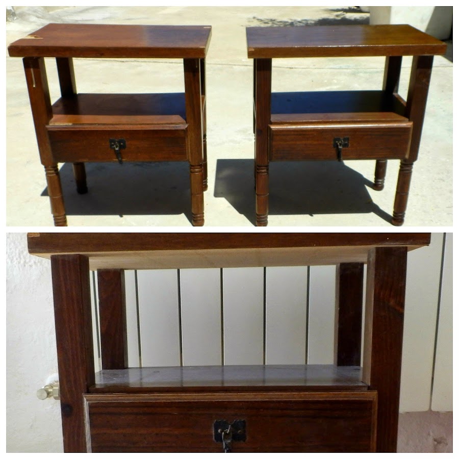 Ahora os enseño mi aportación a este maravilloso estilo decorativo. Mi amiga Carmen de La Alcoba de María me regaló un par de mesitas de noche para que yo las transformara. Es una loca de la restauración y el reciclaje como yo que lo recogemos todo y a veces ya no nos caben las cosas en casa!!