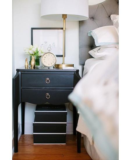 We have two bedside tables in our bedroom, nice but boring. It would be fun changing them for two different tables, but I think I would miss the drawers.