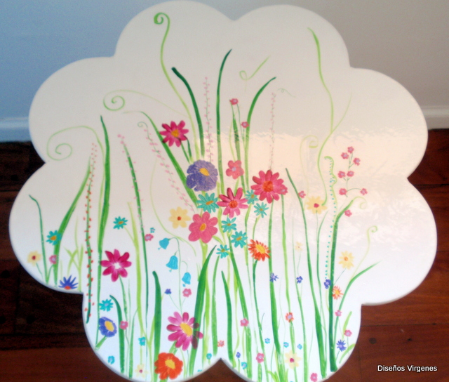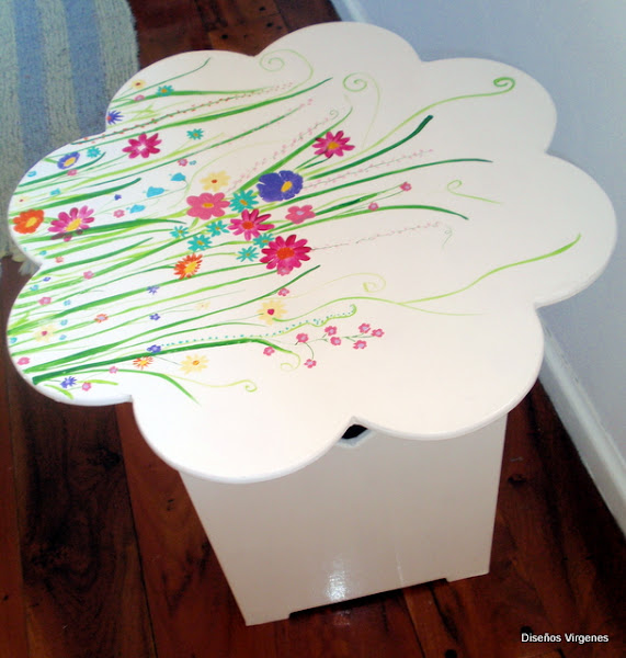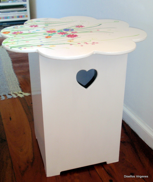 Solamente niñas? Nooo. Si sos una romántica, y te gustan las flores, podes usar esta mesita, como una de arrime con una lampara arriba y además, tiene espacio de guardado, o bien como mesa de luz. Espero que les guste.