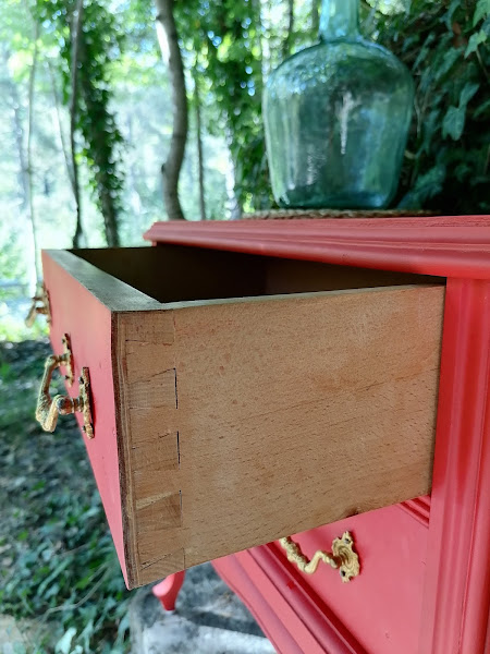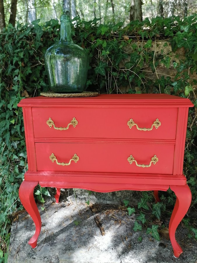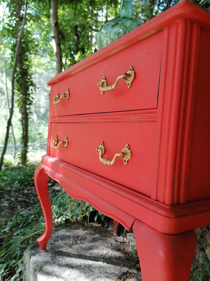 En esta ocasión lacamos en un tono rojo intenso .Destacamos el color dorado de tiradores limpiando