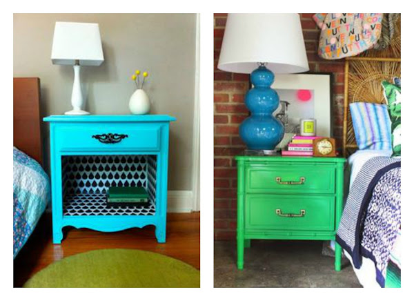 Si no nos llegan a convencer las anteriores, siempre tendremos la posibilidad de coger una vieja mesilla de noche (esas de la abuela) y restaurarlas dándoles un toque de color alegre, el cambio es total!