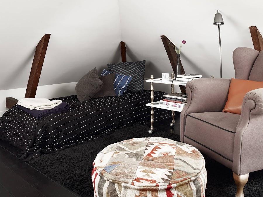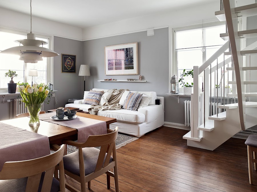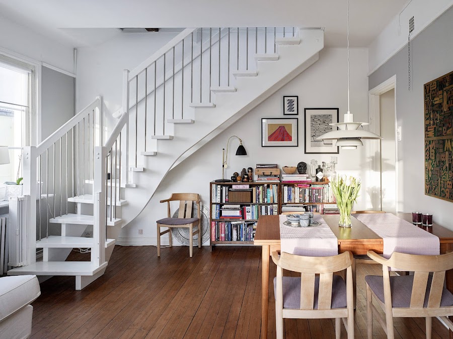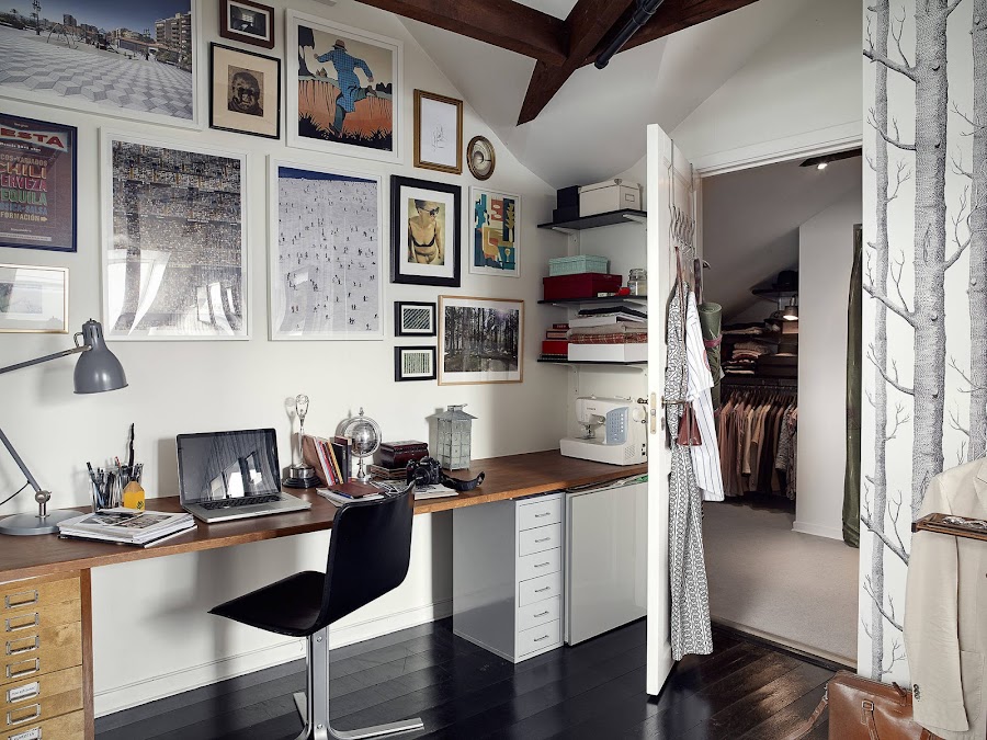 Este duplex de techos abuhardillados en su planta superior, presenta una gran mezcla de estilos, desde el rústico vintage del dormitorio principal pasando por el estilo mid century de la sal de estar o el estilo más clásico de la cocina. Un mix de estilos que queda genial y que han sabido adaptar a la vivienda a la perfección, seleccionando piezas vintage que se han ido encajando en la vivienda con un resultado perfecto!