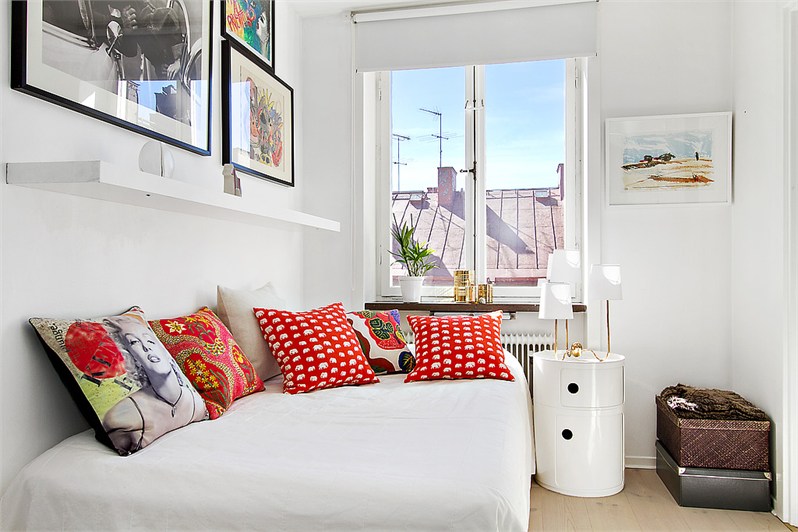 Y en este dormitorio la mesilla Componibili de Kartell es la principal protagonista.