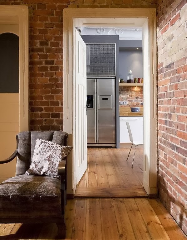 la pared de ladrillo ..junto con la pintura gris ¡¡le da un toque industrial!!! que se suaviza con los tonos blancos