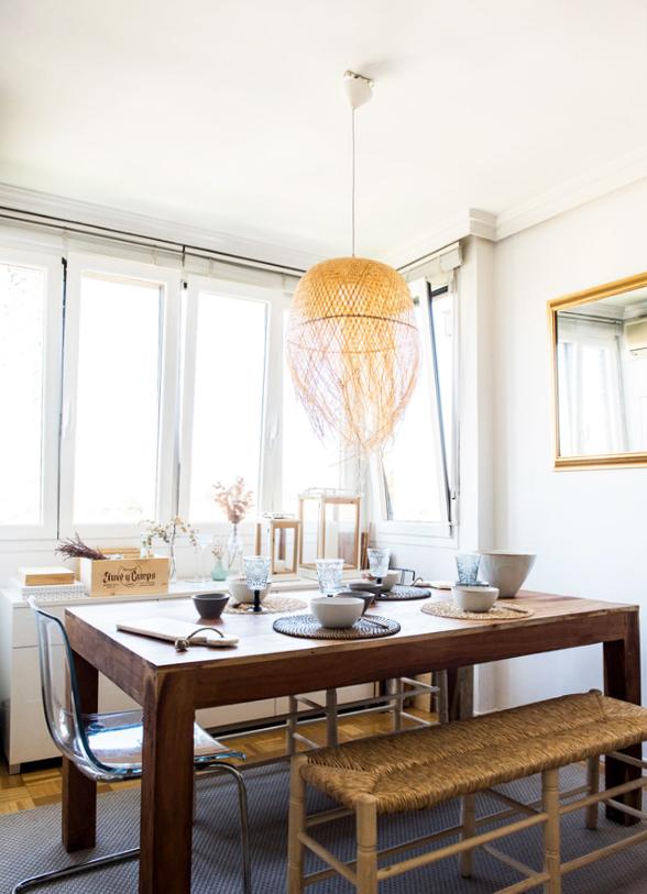 Muchos de los elementos que decoran el salón están efectivamente a la venta en Ebomshop, como las lámparas de bambú y de mesa o el menaje de comedor. Además, en el reportaje veréis que podéis participar en un sorteo de una de las tablas de mármol de nuestra tienda.