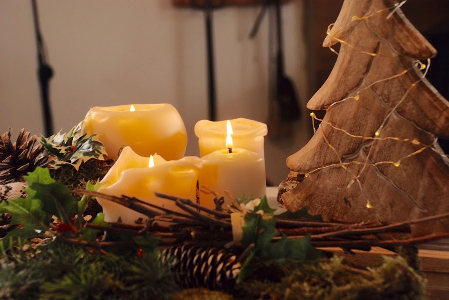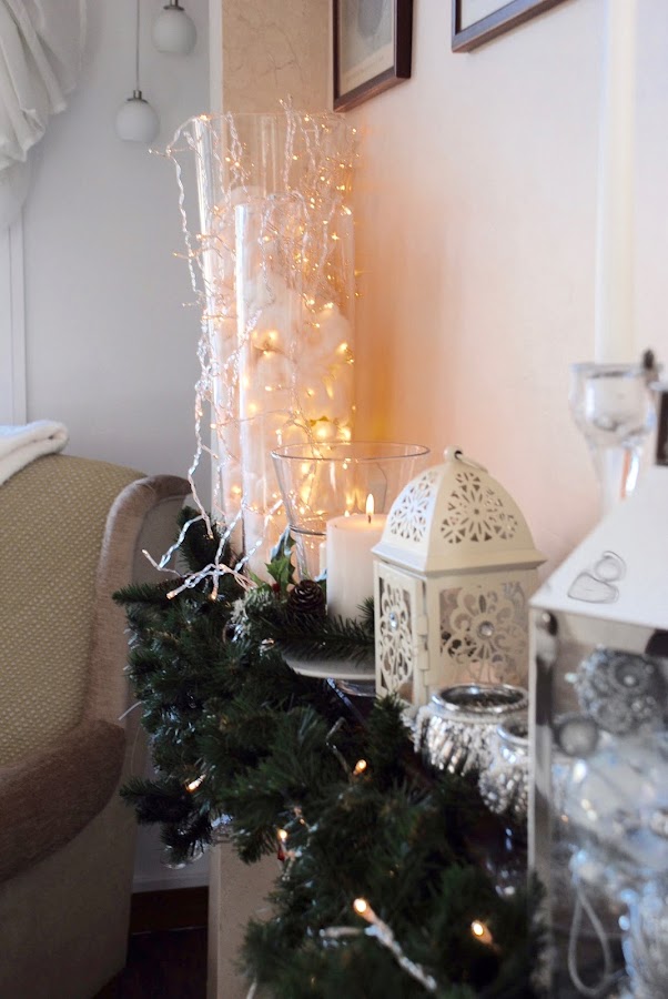 Me encanta la uniformidad en la decoración de Navidad, para no sobrecargar la estancia. Este año me he decantado por el blanco y plata. Pero de lo que si lo he recargado es de luces y velas.