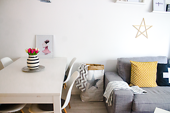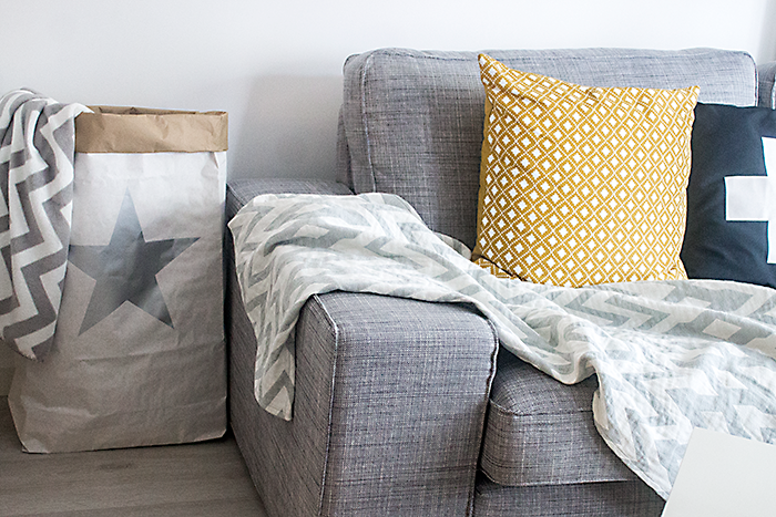 Como novedades tengo los sacos (en el salón he dejado uno) de Be-nized bags y que si os gustan podéis hacerles un pedido enviando un email a su cuenta aquí, la verdad es que son unos sacos ideales para almacenar cositas, y si tenéis niños son perfectos la verdad, y lo que más me gusta de ellos es su diseño tan nórdico que dan ese aire tan escandinavo a una casa. Por otro lado la lámina de Vee Speers también es nueva, aunque en realidad estoy esperando la mía original y que si os gusta la podéis encontrar aquí, sobre la artista Vee Speers ya os hablé en mi último post aquí, y más cosas nuevas que han entrado son algunas otras láminas, el plaid de Maisons du Monde que pronto veréis en mi cama también y poco más.. Ya sabéis que para el otoño los colores que más me gusta combinar son el gris y el mostaza!!