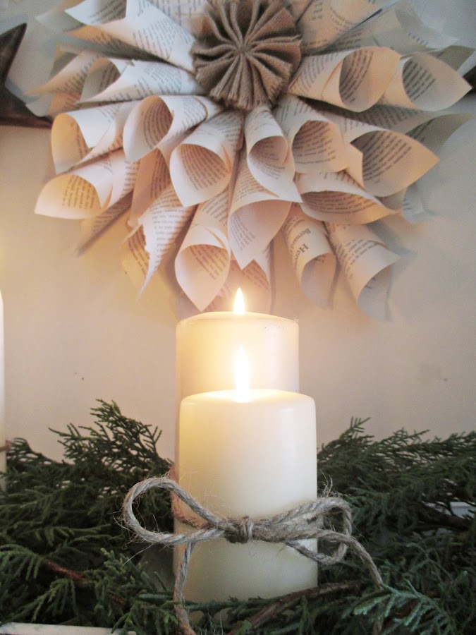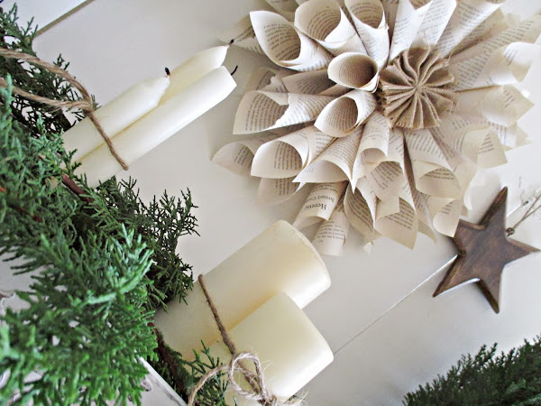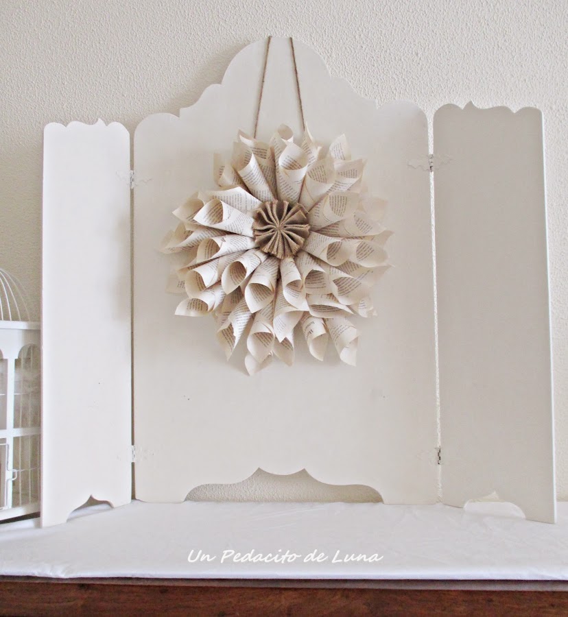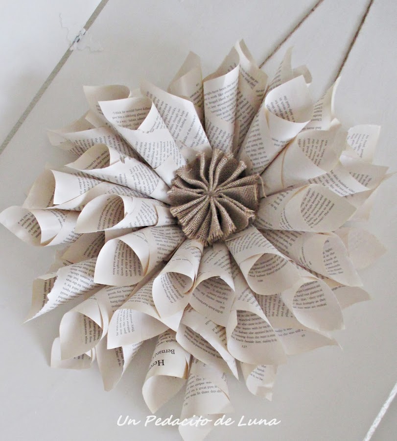Así que me puse a hacer otra corona, esta vez, con hojas de un libro viejo que compré en el rastro para estos