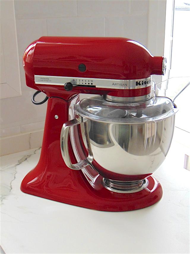 Pero la reina sigue siendo mi Kitchen Aid que luce su rojo triunfal en mi nueva cocina.