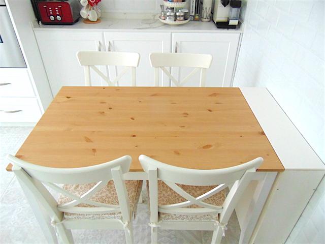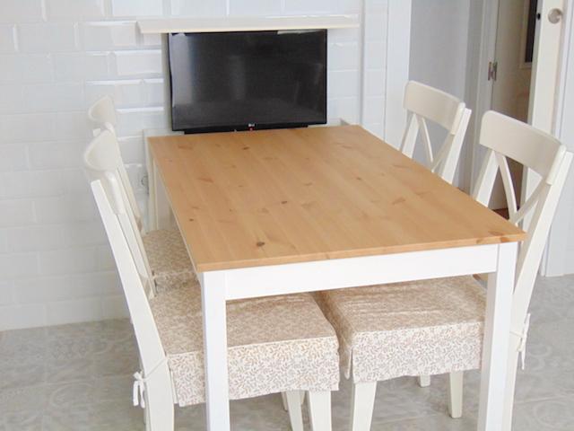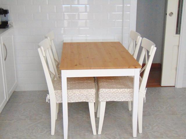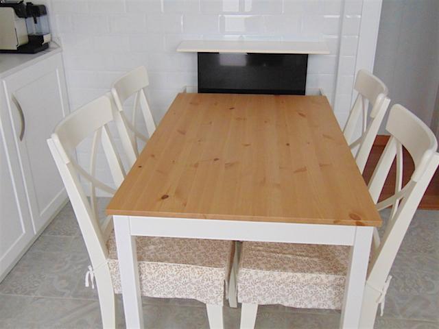 La mesa y las sillas son de IKEA, la medida nos venía perfecta. El anexo que veis en blanco junto a la mesa esconde una pequeña sorpresa.