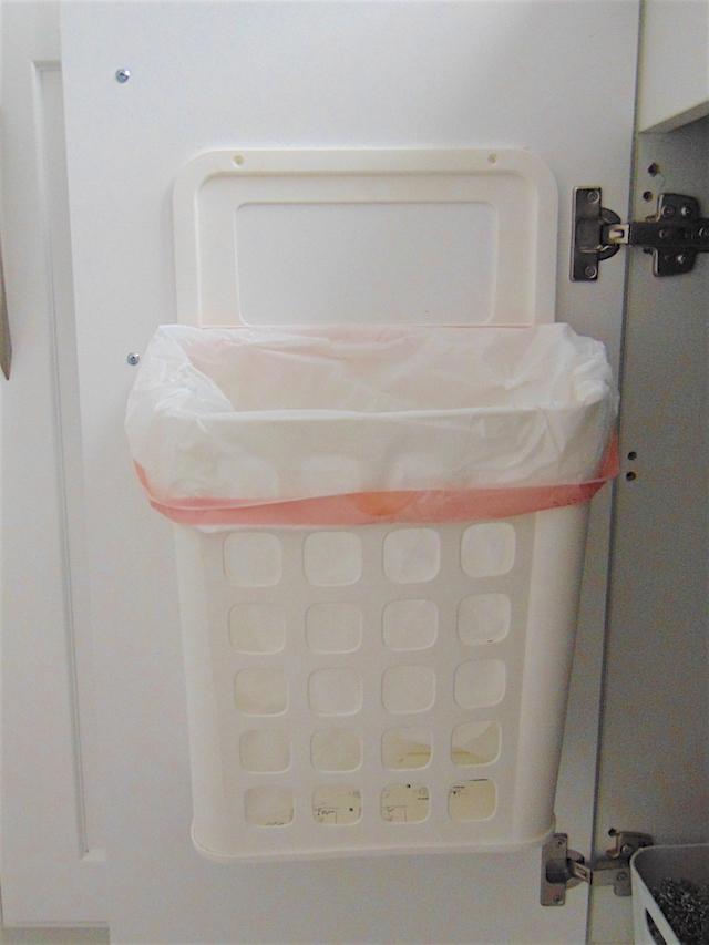El fregadero es grande y los bajos ocupan mucho espacio así que preferimos poner estas prácticas y baratas cestas para las basuras que aparatosos e incómodos cubos.