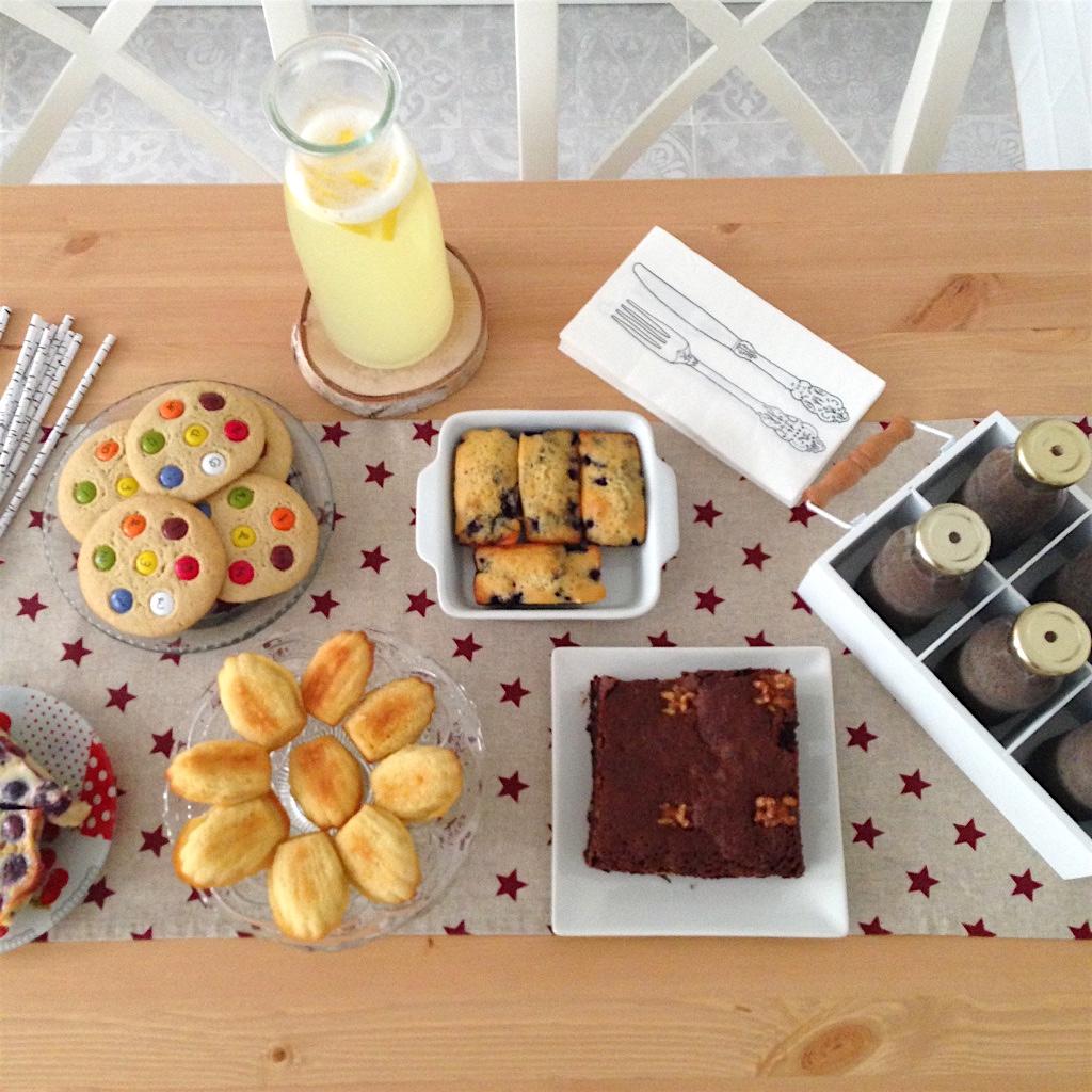 Y claro hay que estrenar la K.A. en la nueva cocina: cookies de lacasitos, madeleines, minicakes de limón y arándanos, brownie, clafoutis de cerezas, limonada casera y batidos de Oreo. ¿No está mal eh?