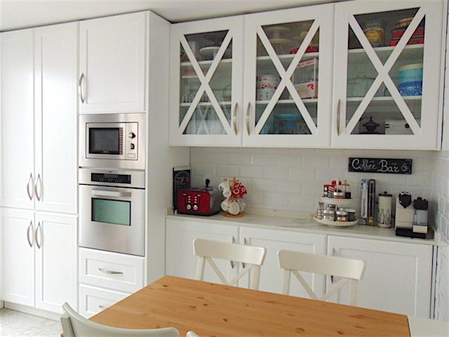 Esta parte la he ganado al ampliar la cocina. Con lo mucho que uso el horno era necesario ponerlo en columna, en su nueva posición es más cómodo a la hora de meter y sacar las cosas recién horneadas. Además es una zona más limpia y perfecta para preparar los desayunos.